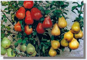 Die Sorten "Gellerts" , "Grüne Williams" und "Clapps Liebling" auf einem Baum