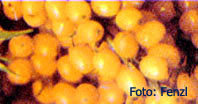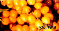 Sanddornbeeren besitzen (nach den Hagebutten) den höchsten Vitamin - C - Wert aller bei uns kultivierten Pflanzen. Sie haben davon 8 x soviel wie eine Zitrone. Unübertrefflich ist Sanddorngellee oder Sanddornmarmelade.
