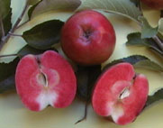 Das Fruchtfleisch dieses Apfels ist rot ( ! ).