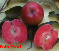 Jeder der zum ersten Mal in so einen Apfel beisst wird wegen dem roten Fruchtfleisch sehr überrascht sein.